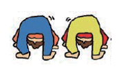 ⇒前回りをしたら、肘を曲げたまま空中で止まり、両足で前にキックをする運動です。