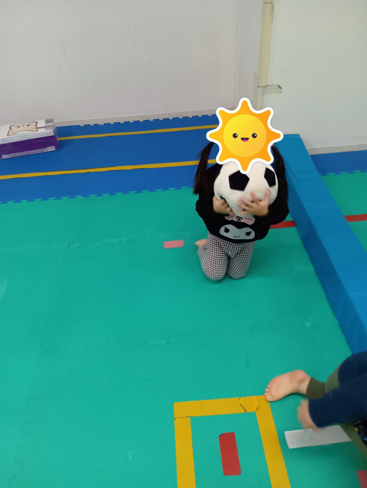 柔らかいサッカーボールやボールを3段に積み上げたりと様々なボールの使い方があり、たくさん運動遊びができました!!