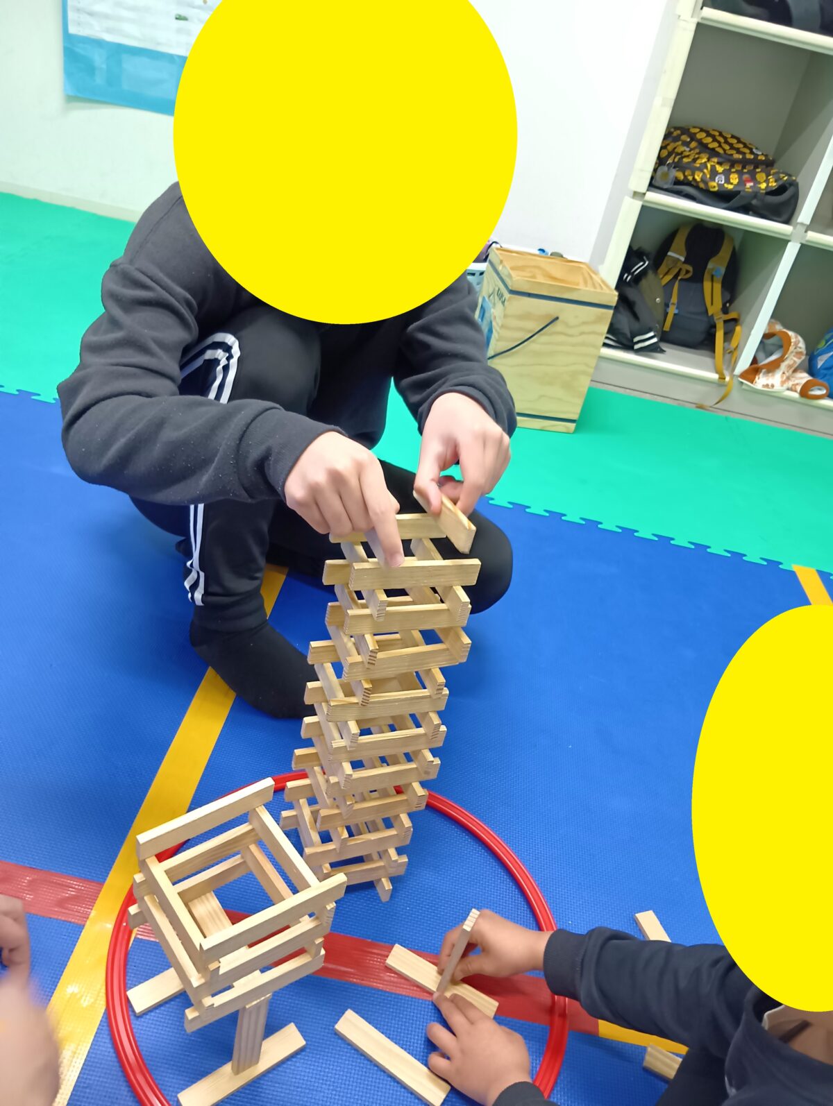 そして、以外と白熱する「カプラ積み競争」チームで協力し合い、一番高く積み上げたチームが勝ちとなります。時間は3分間!ただ高く積めばいいってもんじゃない!土台がしっかりしていないと後もう少しの所で崩れてしまいます、、。とっても、盛り上がりました!