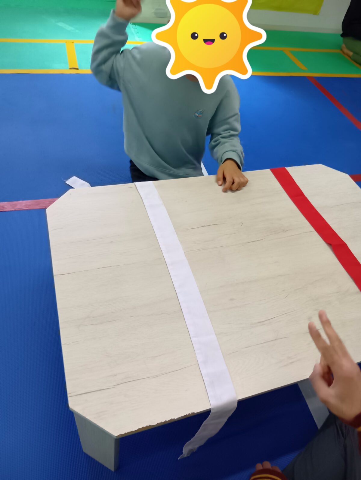 勝った人は右側のハチマキ、負けた人は左側のハチマキを素早く取るという特別ルール。